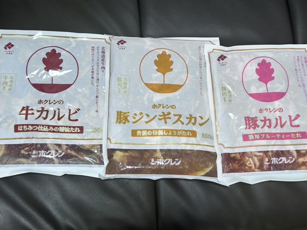 豚ジンギスカン」「豚カルビ」「牛カルビ」がぎっしり詰まっていました。