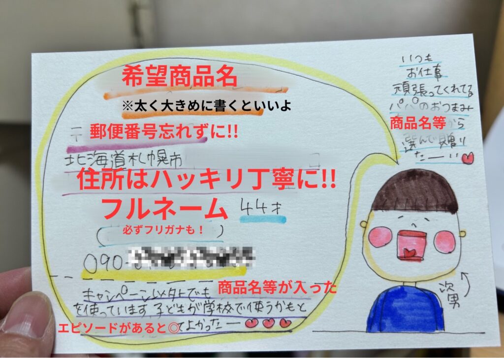 私はいつもこんな感じで応募はがきを書いています!!